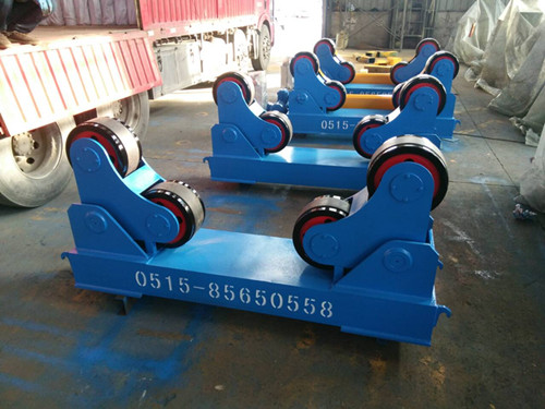 自調(diào)式滾輪架的性能特點 1、自調(diào)式焊接滾輪架主要由主動滾輪架、被動滾輪架、電控系統(tǒng)等組成。 2、主動(被動)滾輪架底座上分別安裝有兩組能轉(zhuǎn)動一定角度的滾輪裝置,兩組滾輪裝置能夠繞其心軸轉(zhuǎn)動一定角度,故隨工件規(guī)格大小能自動調(diào)整從而保證工件旋轉(zhuǎn)時平穩(wěn),連續(xù)。 主動滾輪架上安裝有一套驅(qū)動裝置,驅(qū)動裝置主要由驅(qū)動電機、減速器、聯(lián)軸器、聯(lián)接軸等組成。驅(qū)動電機采用國內(nèi)交流電機驅(qū)動,通過 級蝸輪蝸桿減速機驅(qū)動與兩組滾輪裝置心軸同軸的蝸輪蝸桿減速機,再通過兩組齒輪傳動裝置從而驅(qū)動滾輪旋轉(zhuǎn),工件旋轉(zhuǎn)時能對