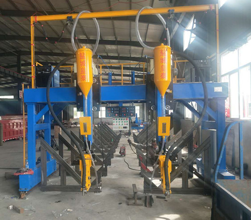 皇泰組焊矯一體機是用于焊接H型鋼的焊接。該線可連續(xù)完成T型、H型鋼在過程中的組立、焊接、矯形、出料等工序。過程采用程序控制,焊接速度的調(diào)整采用變頻技術。 H型鋼組焊矯一體機適于在較小工作場地使用,價格實惠、功能擁有。它包含3個H型梁制造主要工序:組裝----焊接----幾何矯正。它可以對稱和非對稱截面的H型和T型梁。它同時能完成下列工序:梁的初始組裝和后續(xù)組裝、梁在垂直狀態(tài)的對接埋弧焊接、梁的焊接變形(蘑菇狀)的矯正。自動組立機裝有減少焊劑消耗的焊劑循環(huán)系統(tǒng)。H型梁的組裝和焊接為